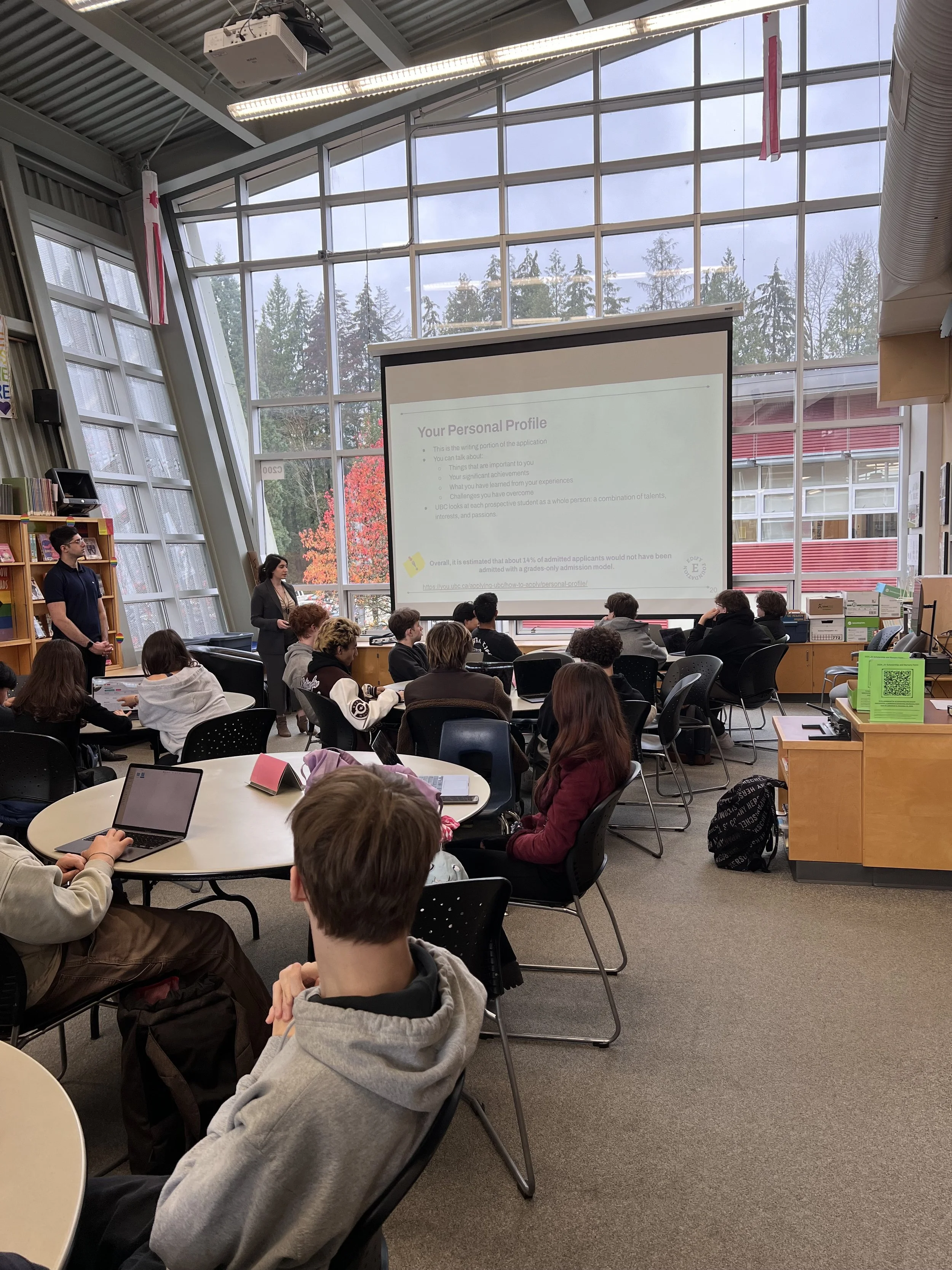 A focused university planning workshop was delivered to over 40 students at Rockridge Secondary, offering practical guidance on post-secondary options and application preparation.